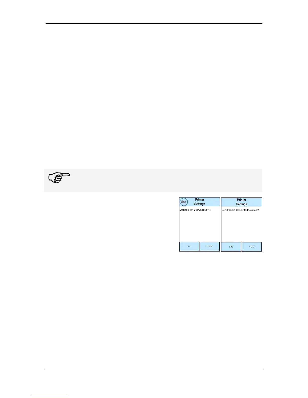ment is run as part of the configuration following a change of ink jet cassette.