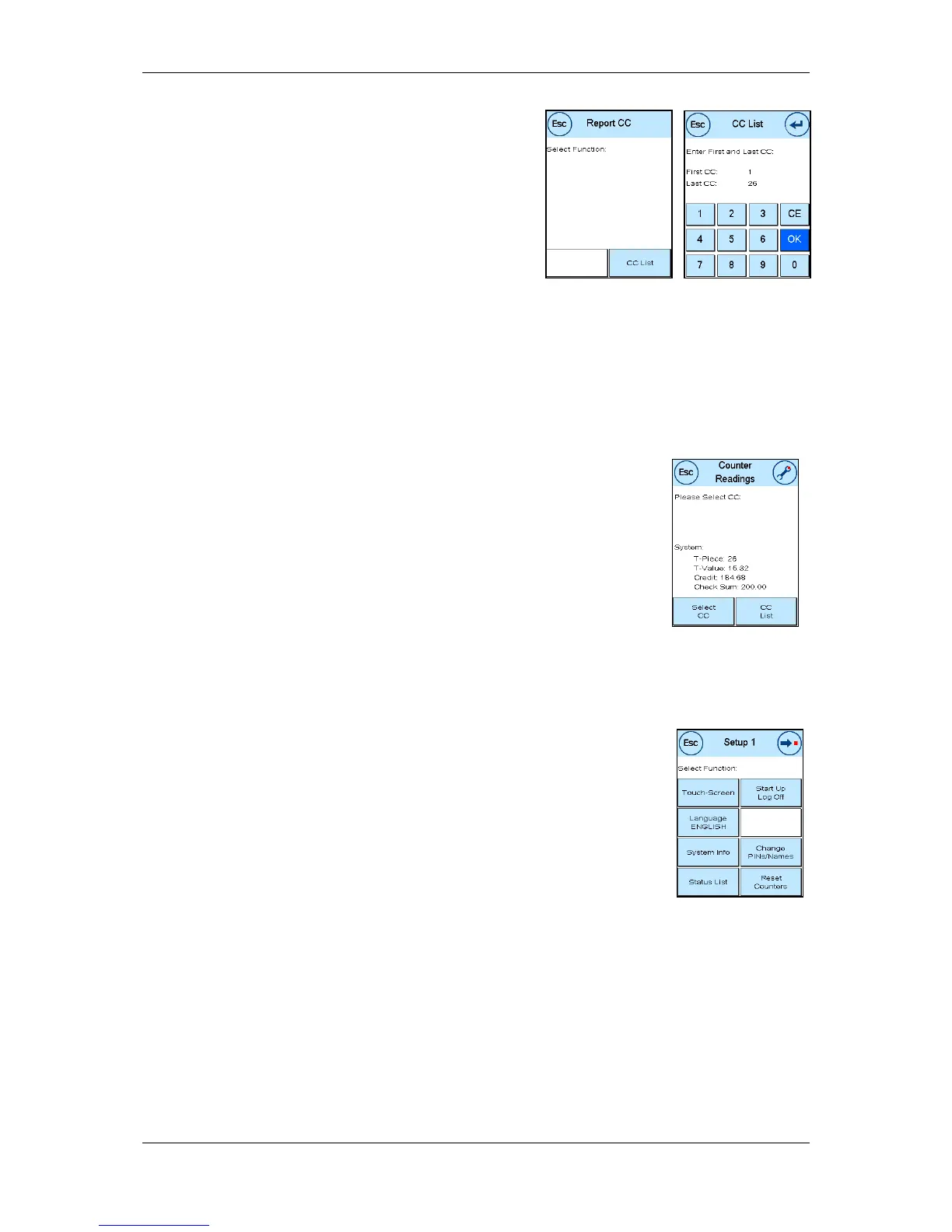 or to modify the PINs and names for other cost centres (Select CC).