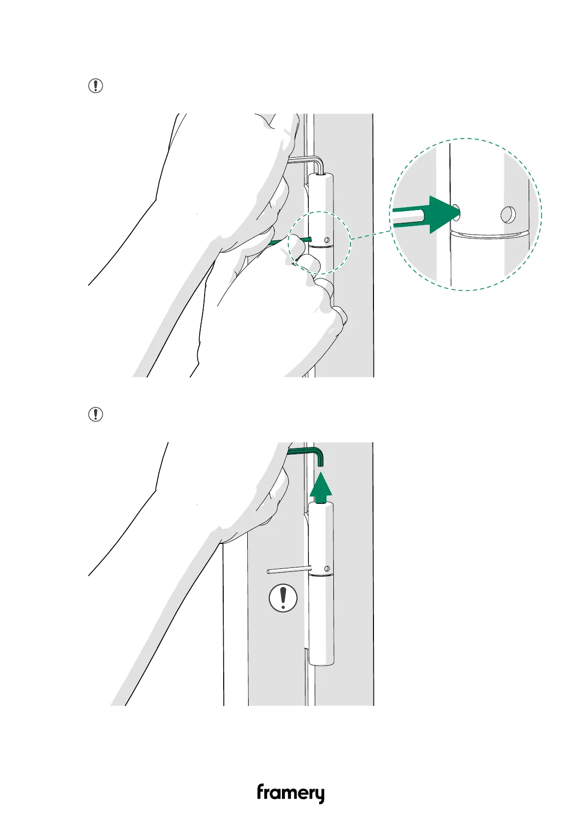 3. Hold the hex key against the resistance and insert the lock pin into the hole on the left-