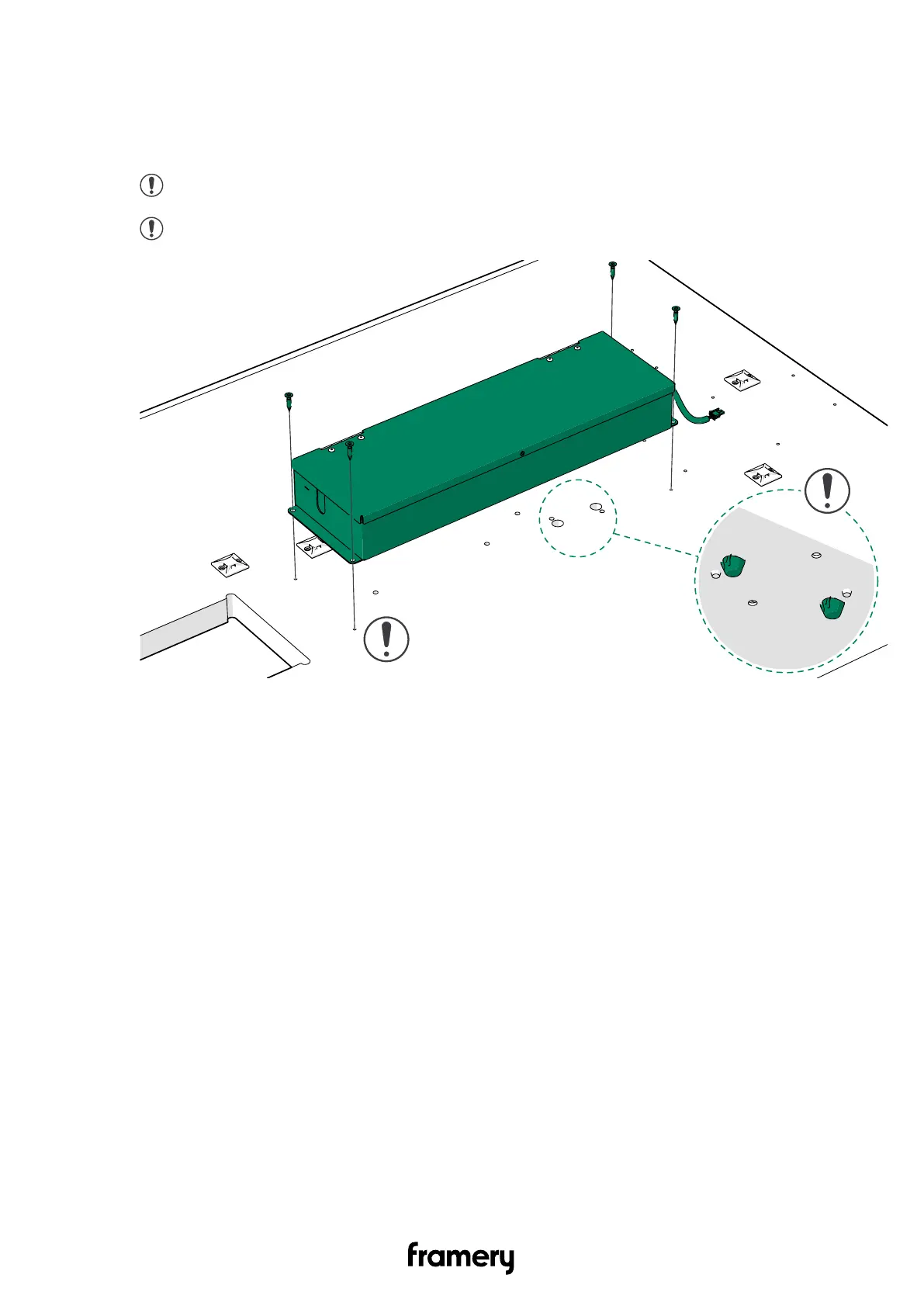 Note: Make sure that you install the metal box to the ready-made holes.