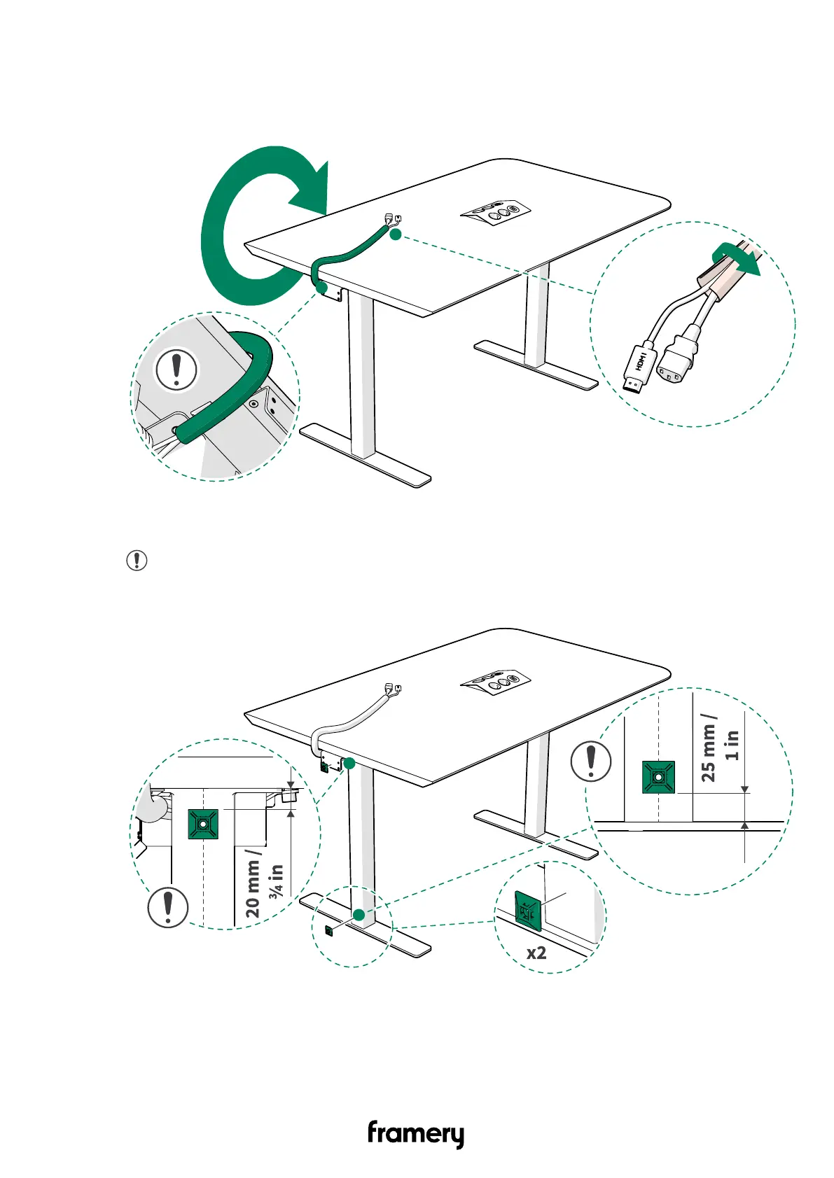 6. Attach the adhesive cable holders (2 pcs) to the left-hand side table leg.