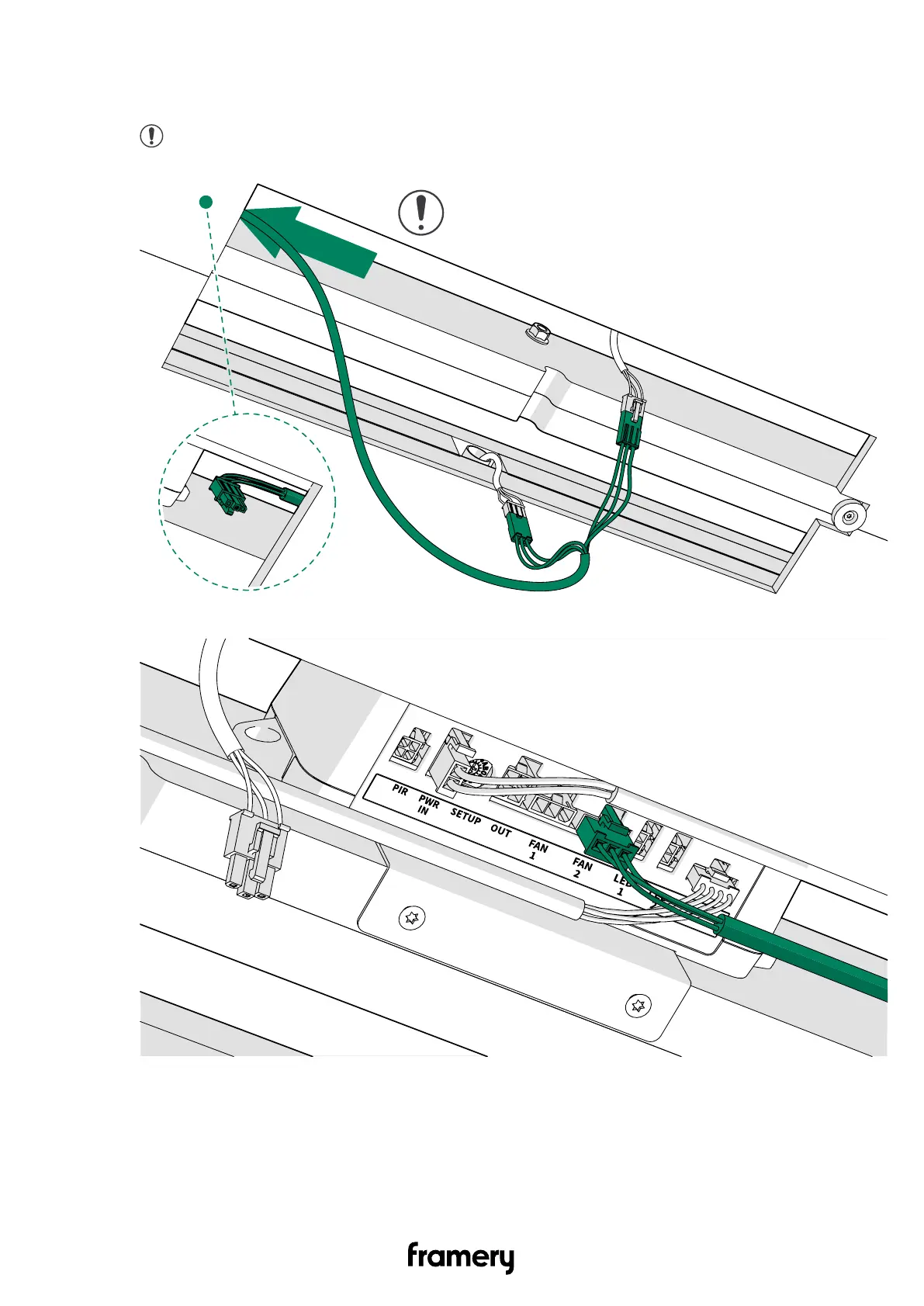 3. Connect the long fan extension cord to the FAN 2 connector of the control unit.