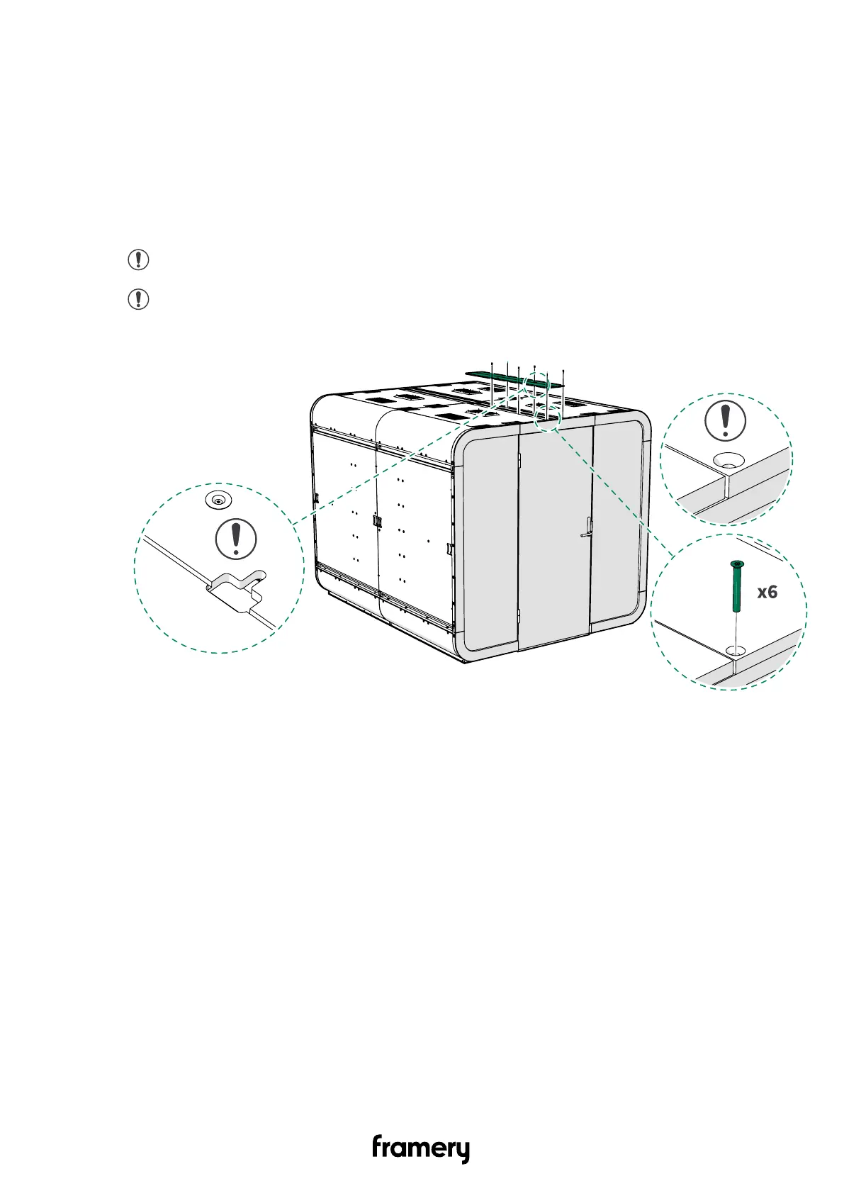 1. Install the roof cover panel to the front half of the roof with 4x30 screws (6 pcs).