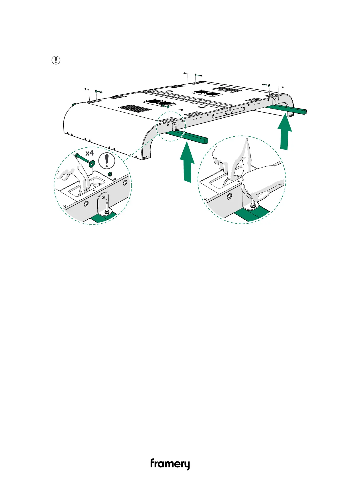 3. Install the roof support beams to the roof with M8x55 bolts (2 pcs each) and flanged