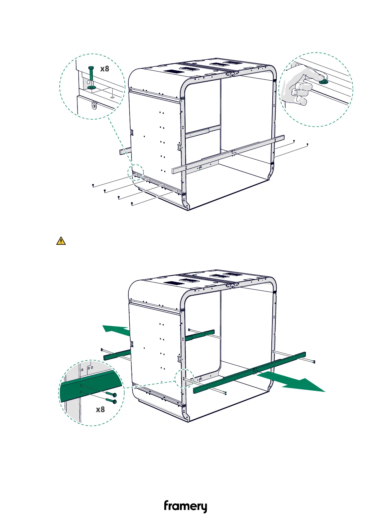 Warning: Do not go inside the pod before fully tightening the bolts after
