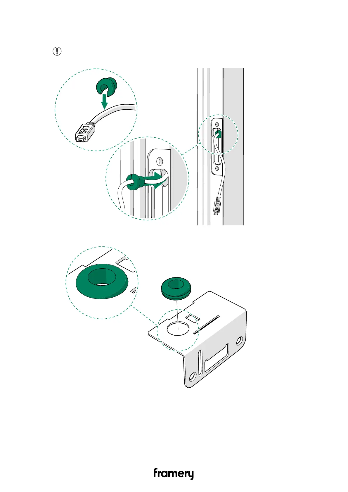 3. Install the small rubber grommet onto the USB cord and insert the grommet into the
