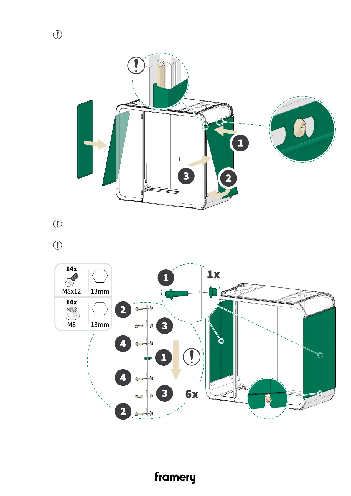 Note: Before you tighten the bolts, make sure that the panel cuts surround the