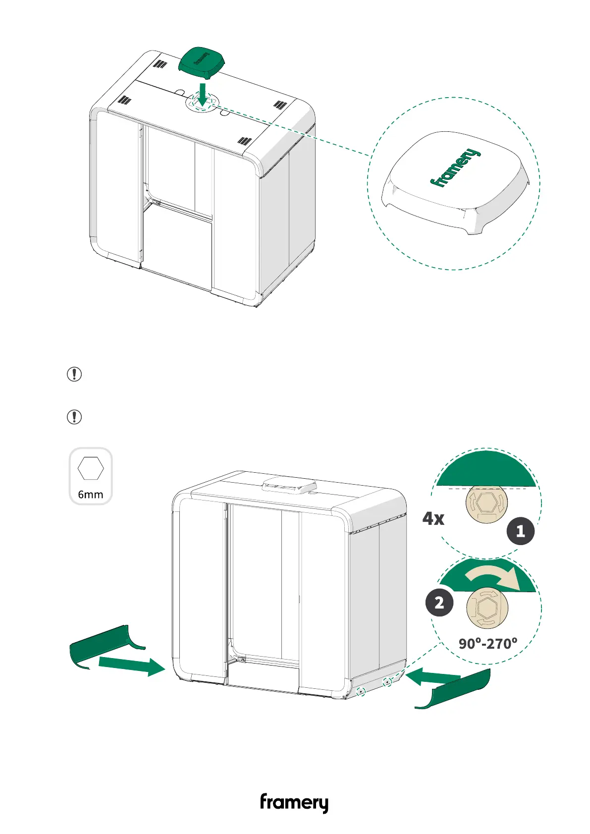 Note: Turn the fasteners until there is no gap between the exterior panels and