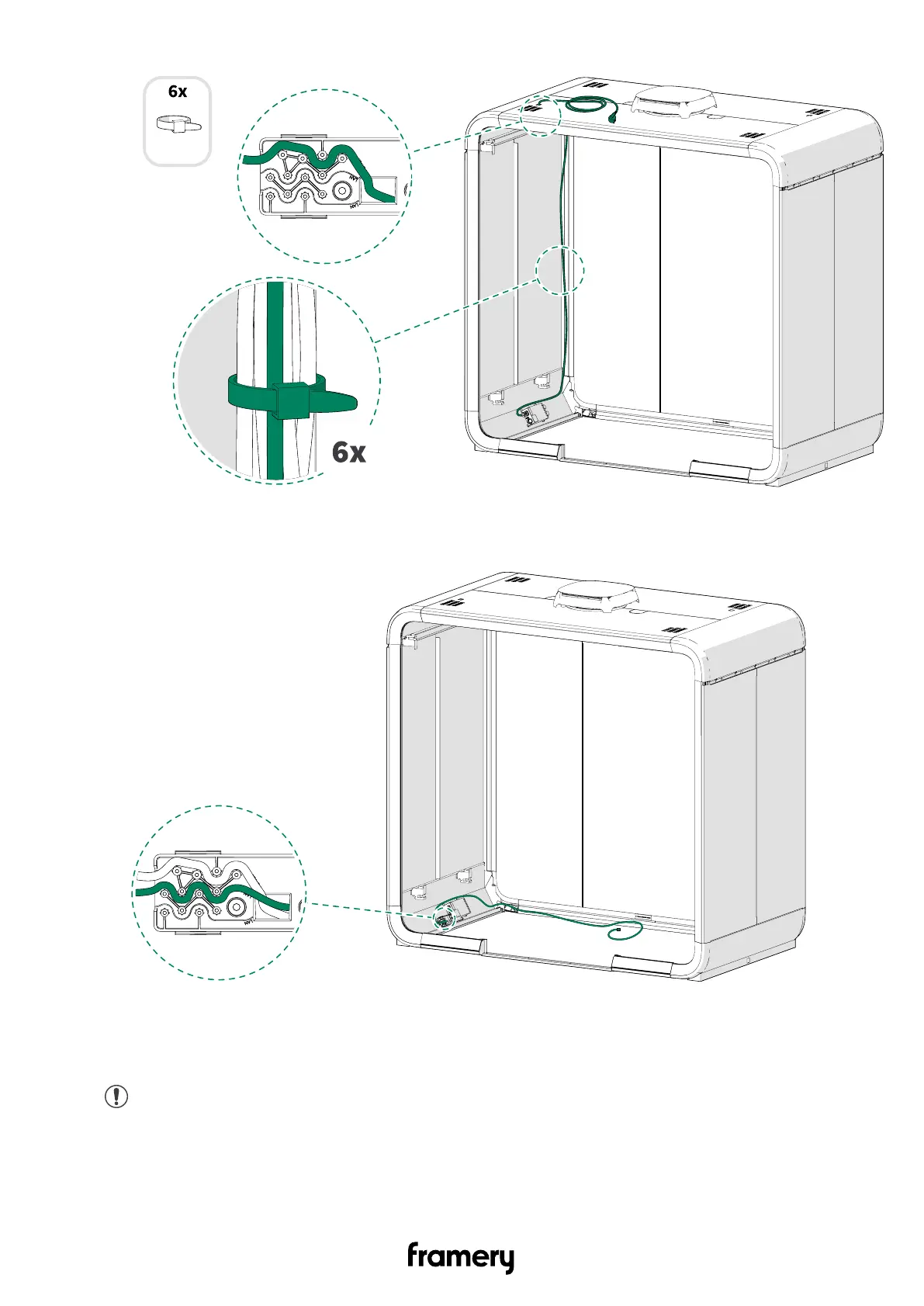 Note: The add-on rails are installed with screws from the inside of the pod.