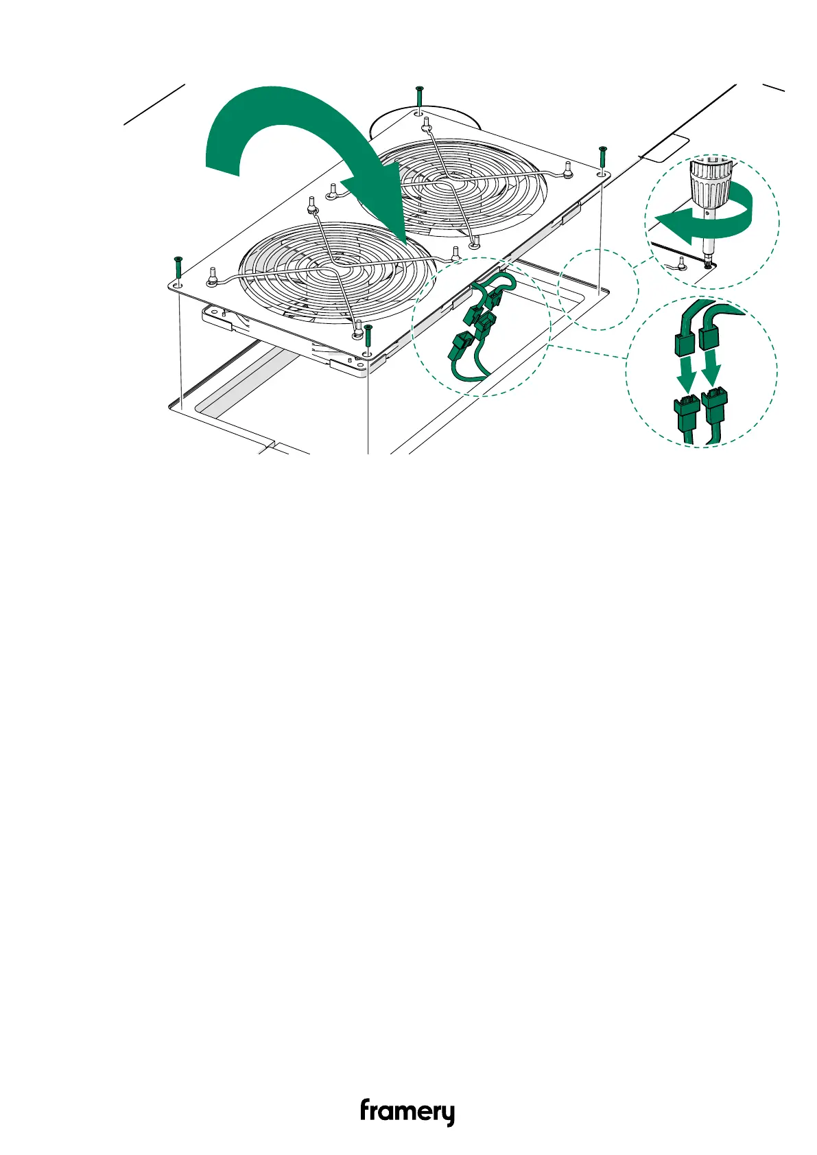 5. Connect the DC connectors and install the fan module with 3.5x16 screws (4 pcs).