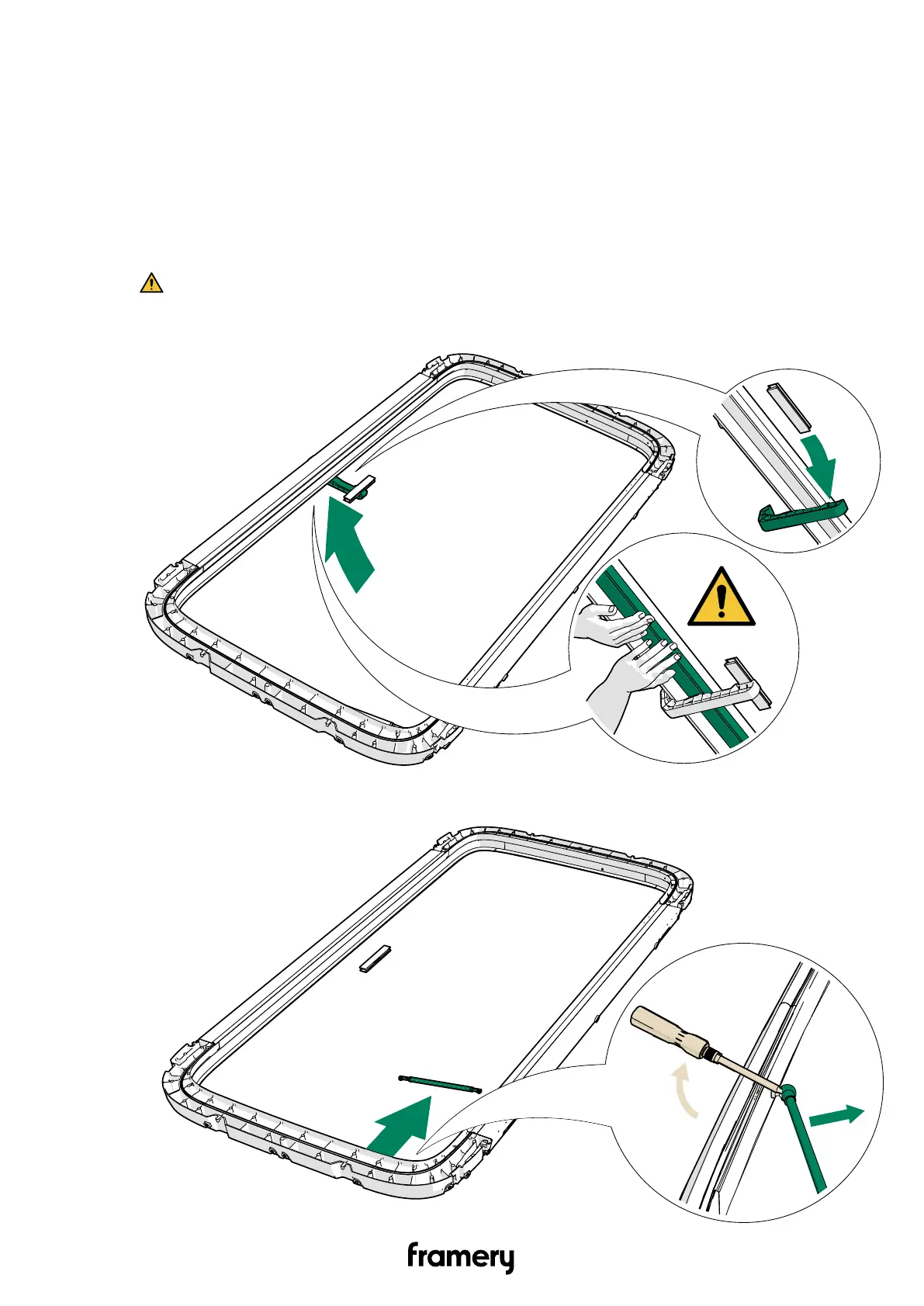 when lifting the front frame with door. Support the door glass so it cannot swing