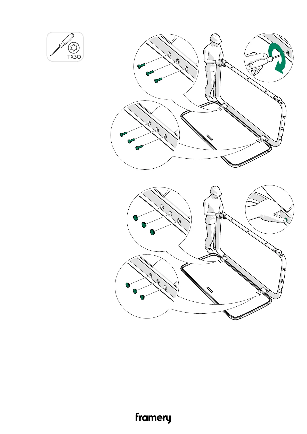 13. Install the door to the hinges on the frame with the screws (6 pcs) removed earlier.