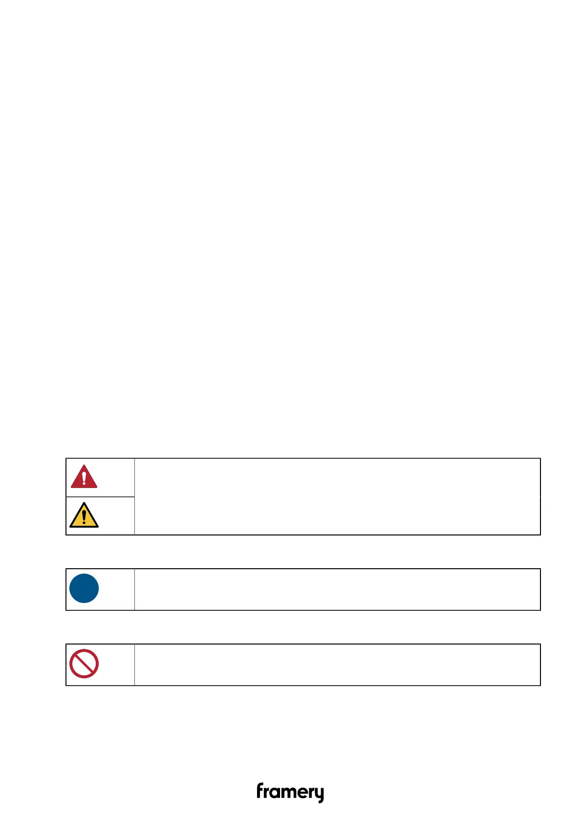 An exclamation point symbol inside a colored triangle indicates a hazardous