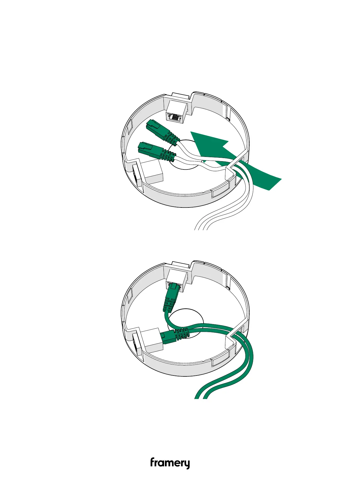 1. Guide the ends of the LAN cords one at a time through the free opening at the side of