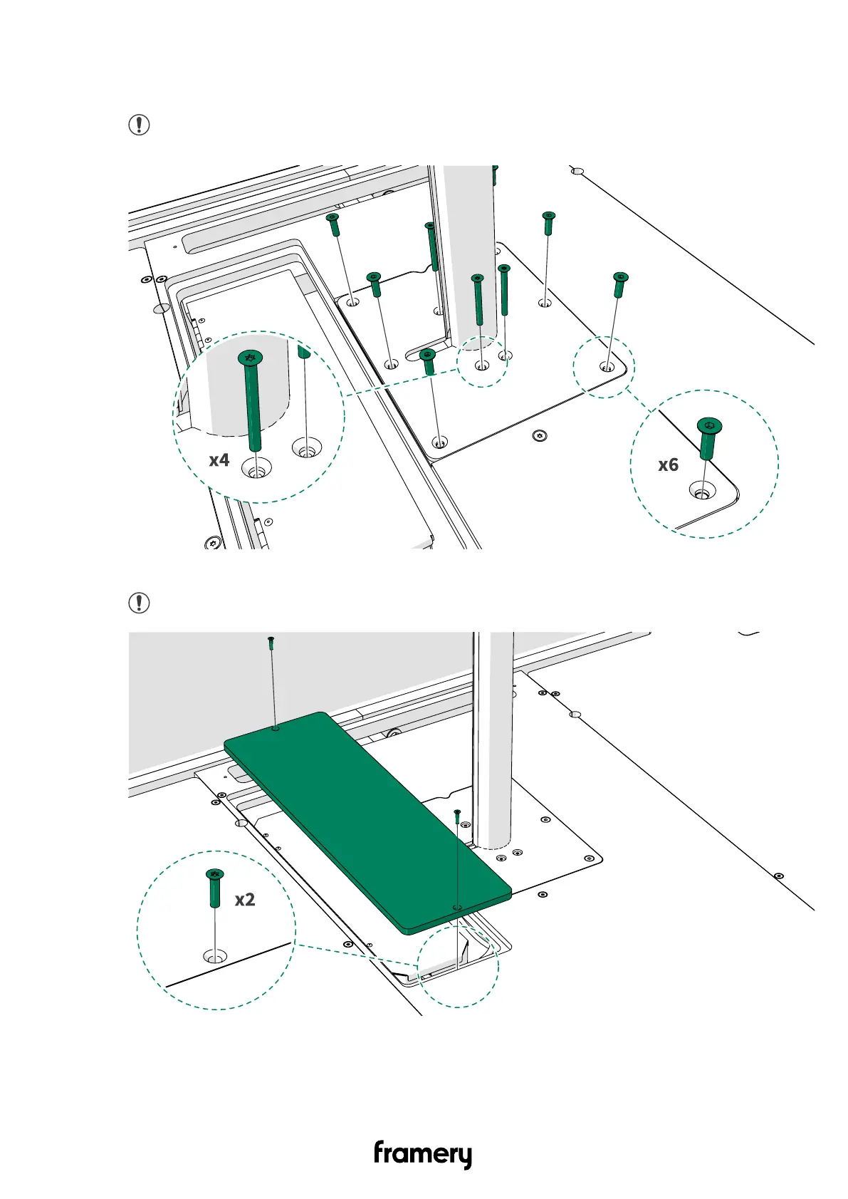 10. Install the base of the table leg with M6x20 countersunk screws (6 pcs) and 5x50