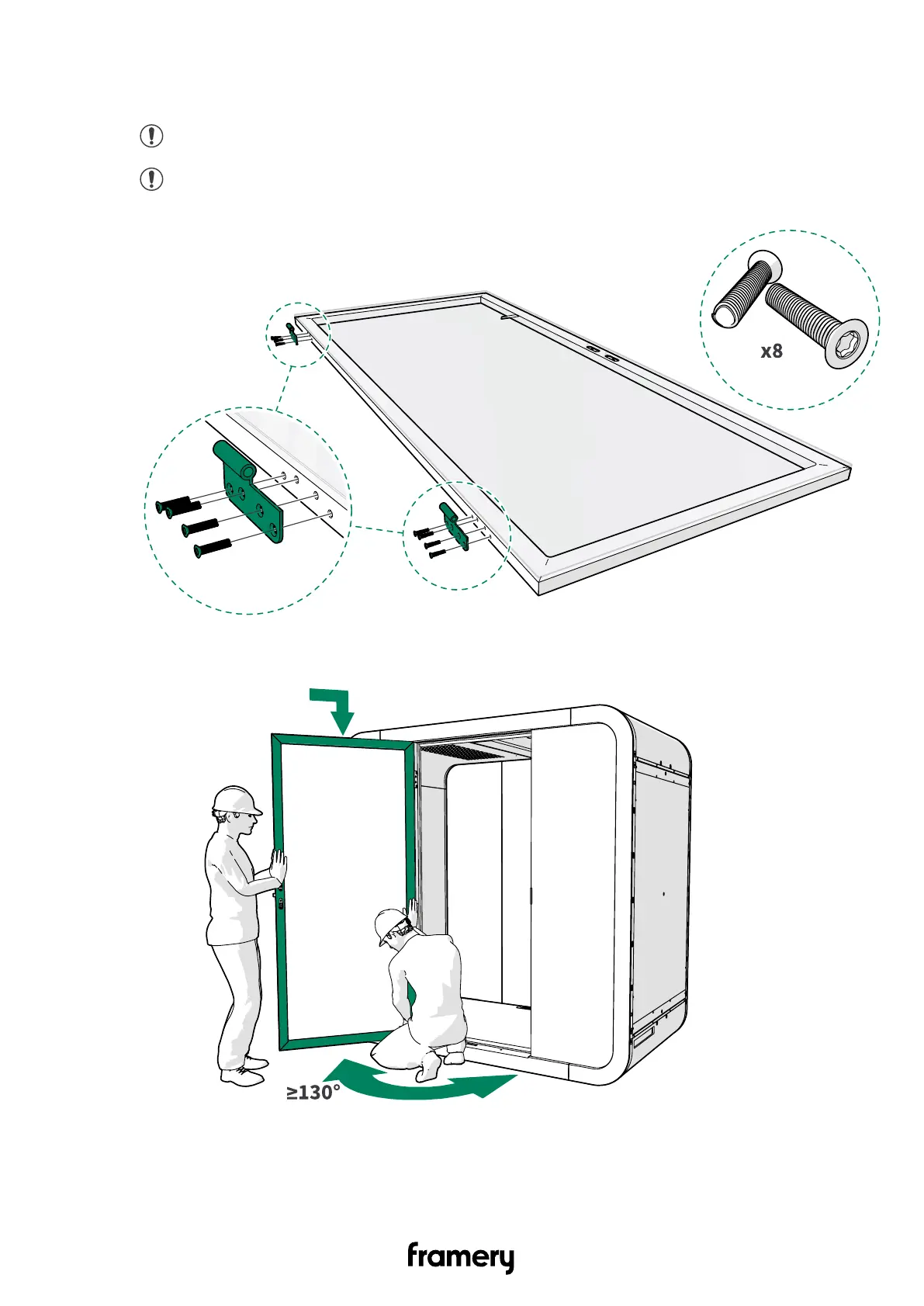 3. Install the remaining halves of the hinges to the door with M6x30 Taptite screws (4 pcs