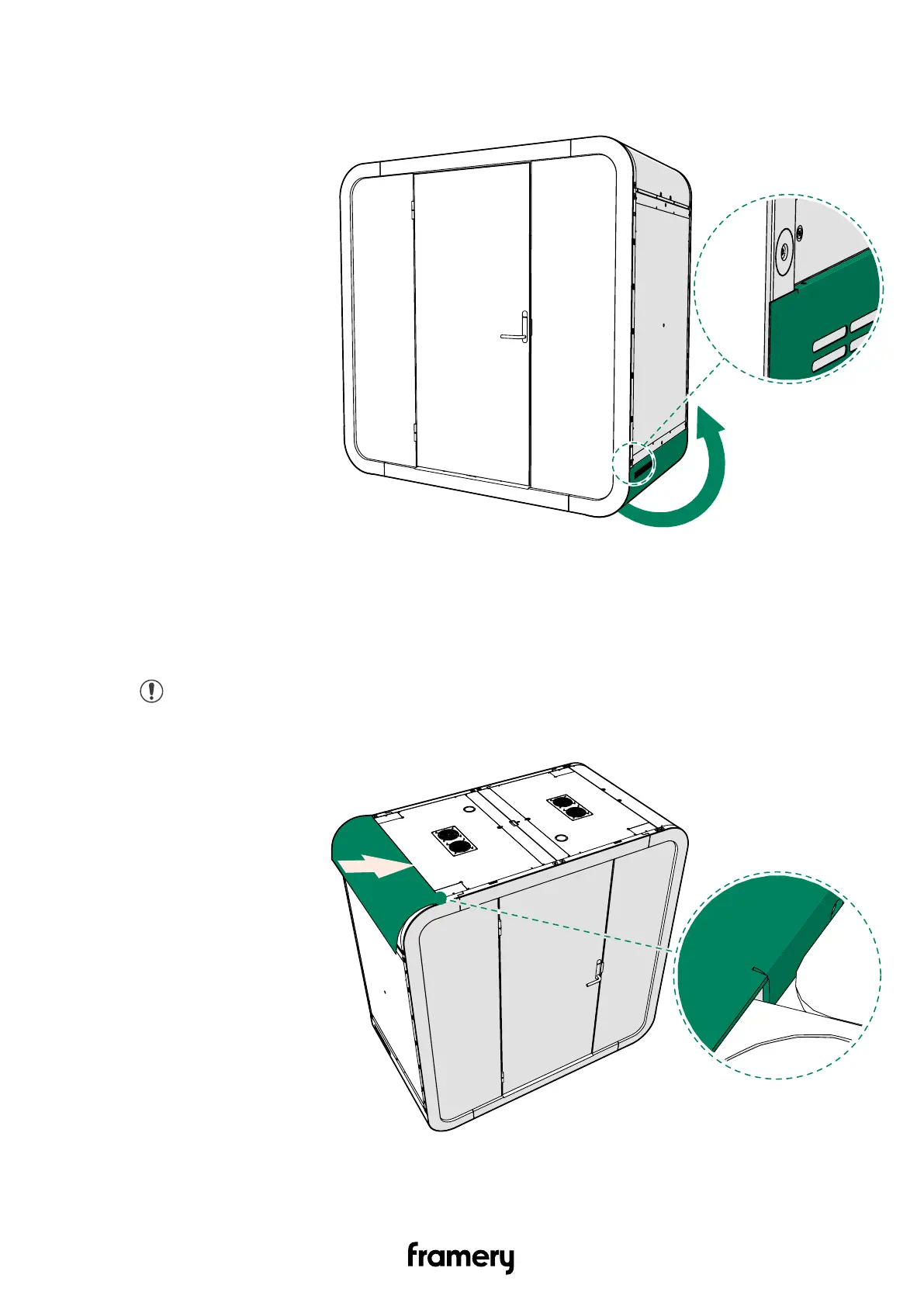 1. Guide the edge of one of the curved roof body covers into the groove at the edge of the