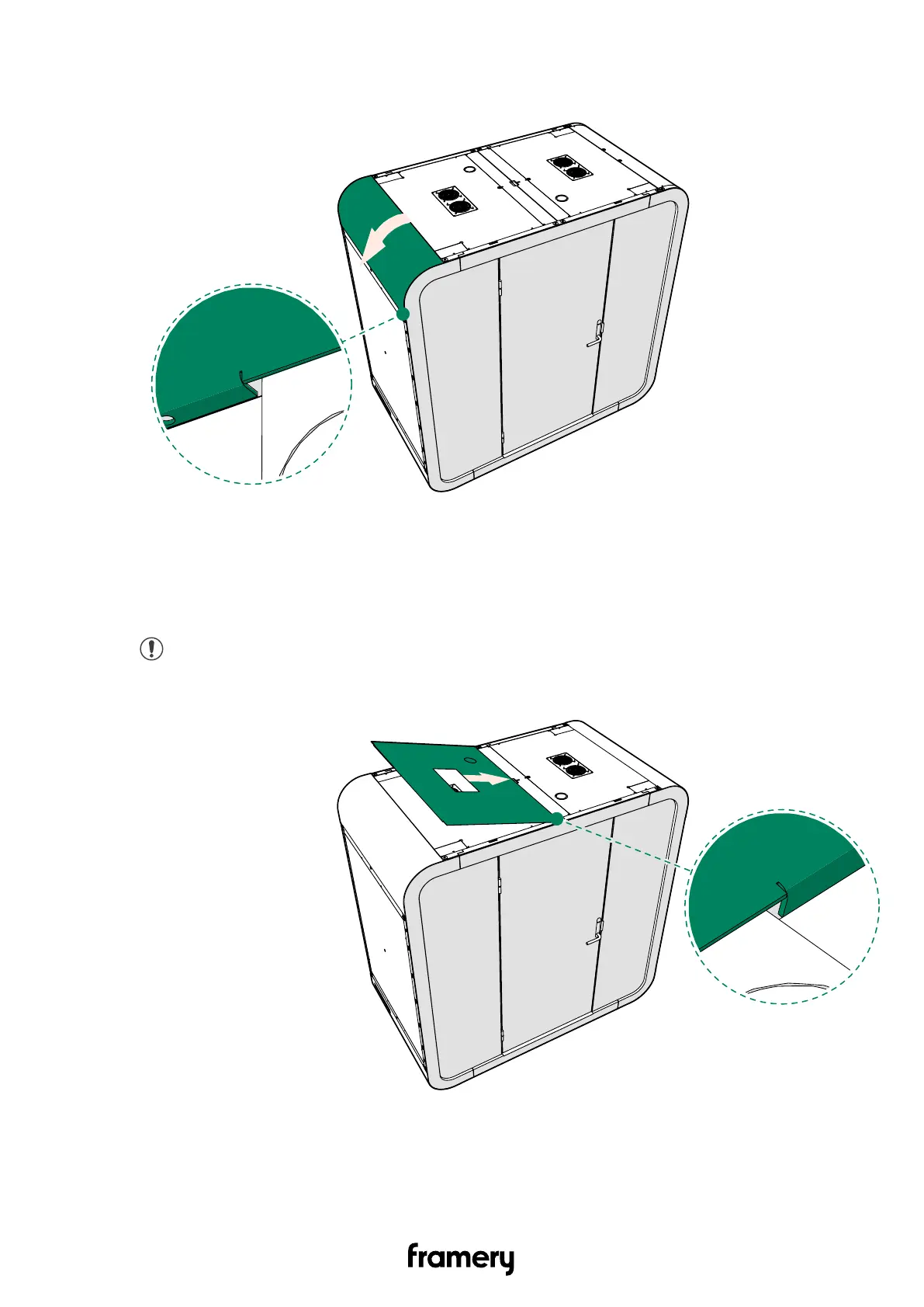 2. Guide the other edge of the body cover into the groove at the upper part of the wall.