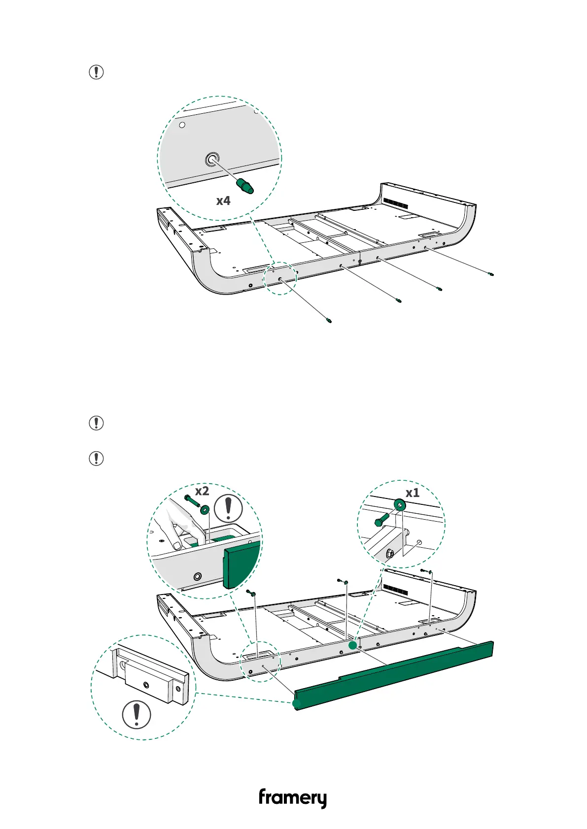 Note: Make sure that you install the correct frame to the front.