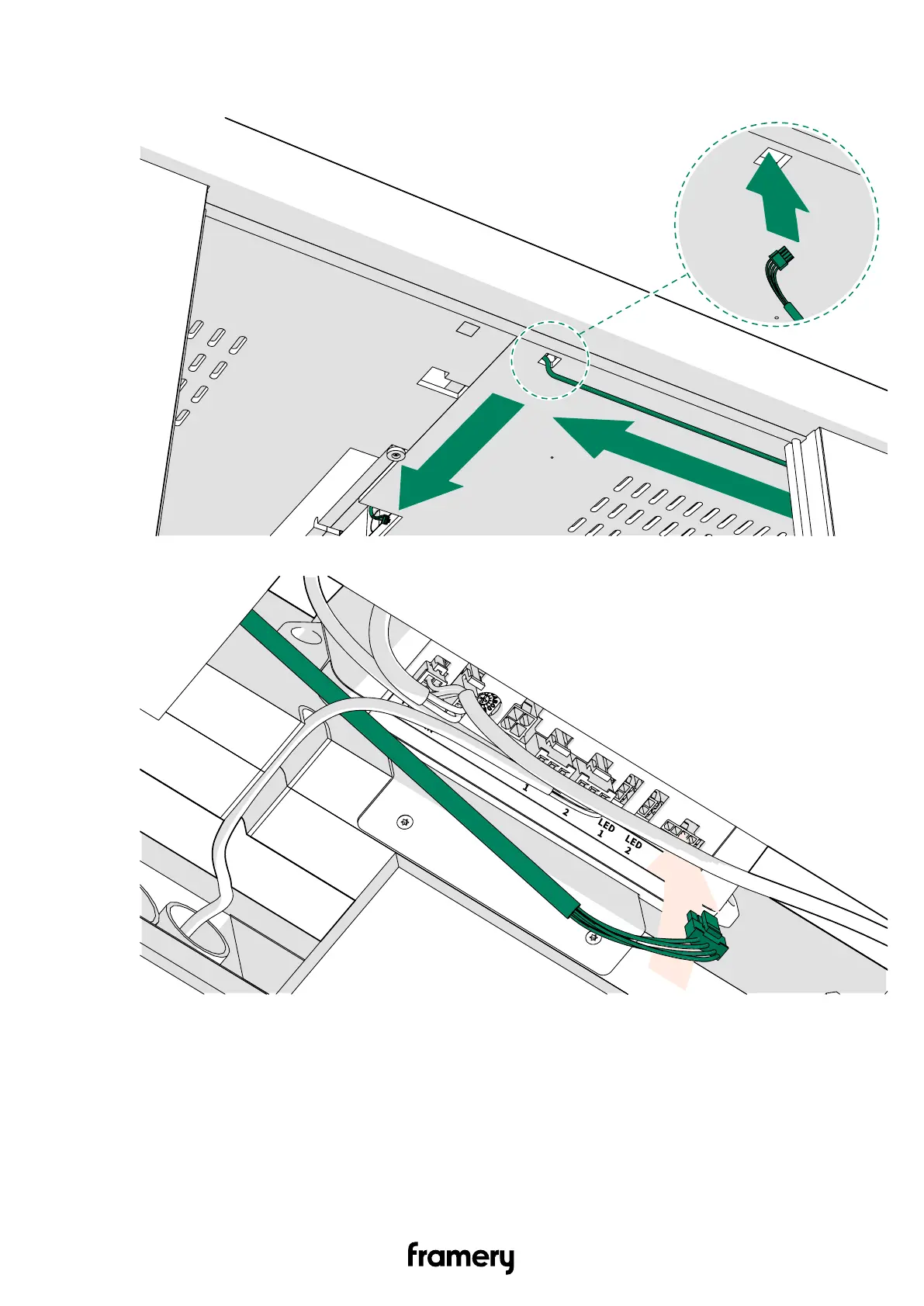 2. Guide the control panel cord from the U-profile on the strike plate-side glass frame to