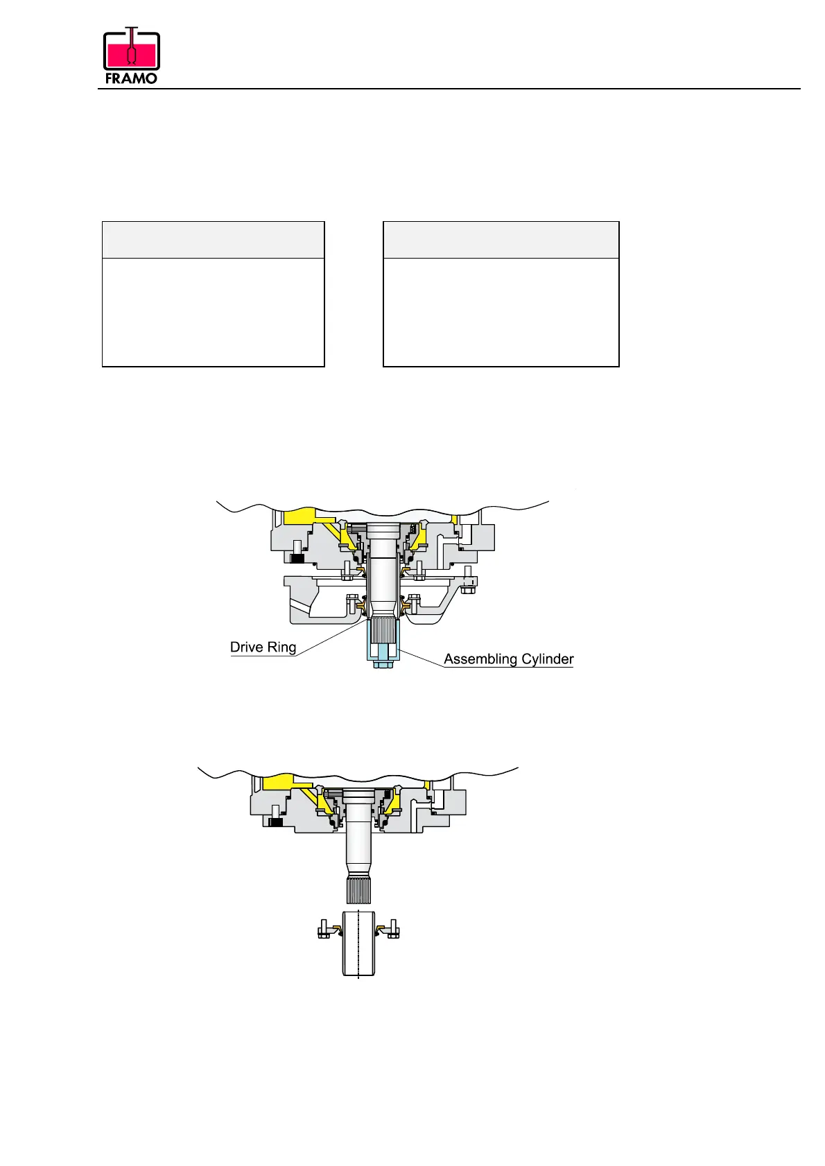 Dismantle lower seal ring housing. Dismantle support ring and FRAMO double cargo seal if