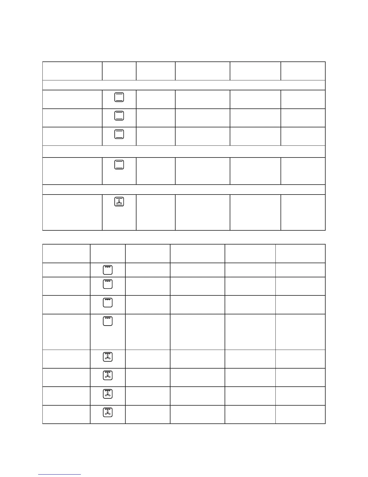 Type of food Function Preheating Shelf (from the