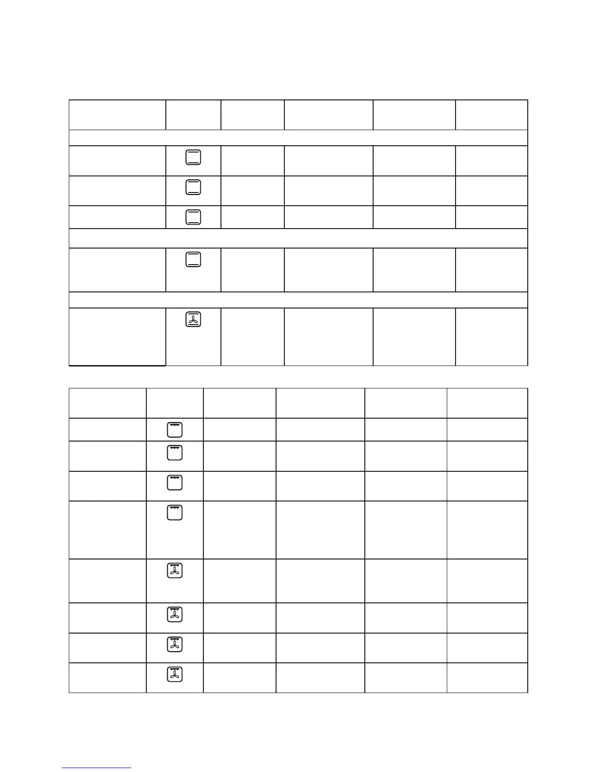 Tableau de cuisson pour la fonction GRIL