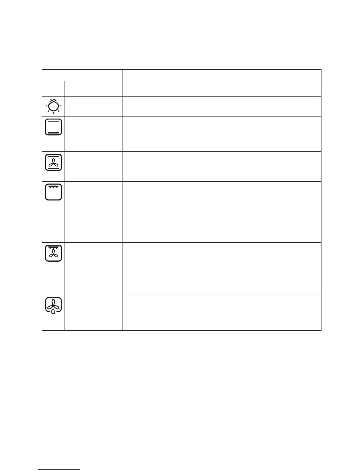 Oven functions table