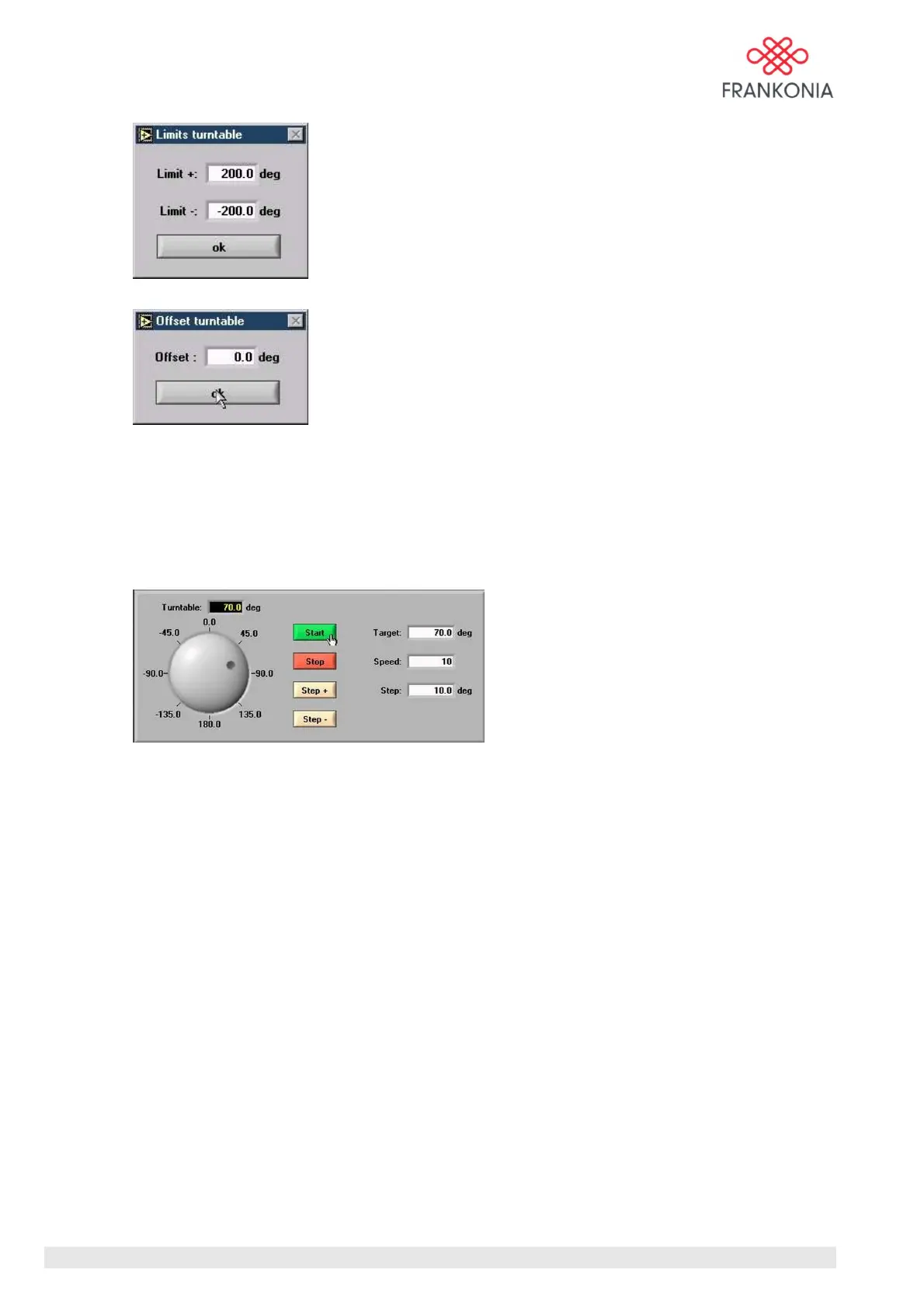 ➔ Click on Turntable/start init to start the initialisation run of the turntable
