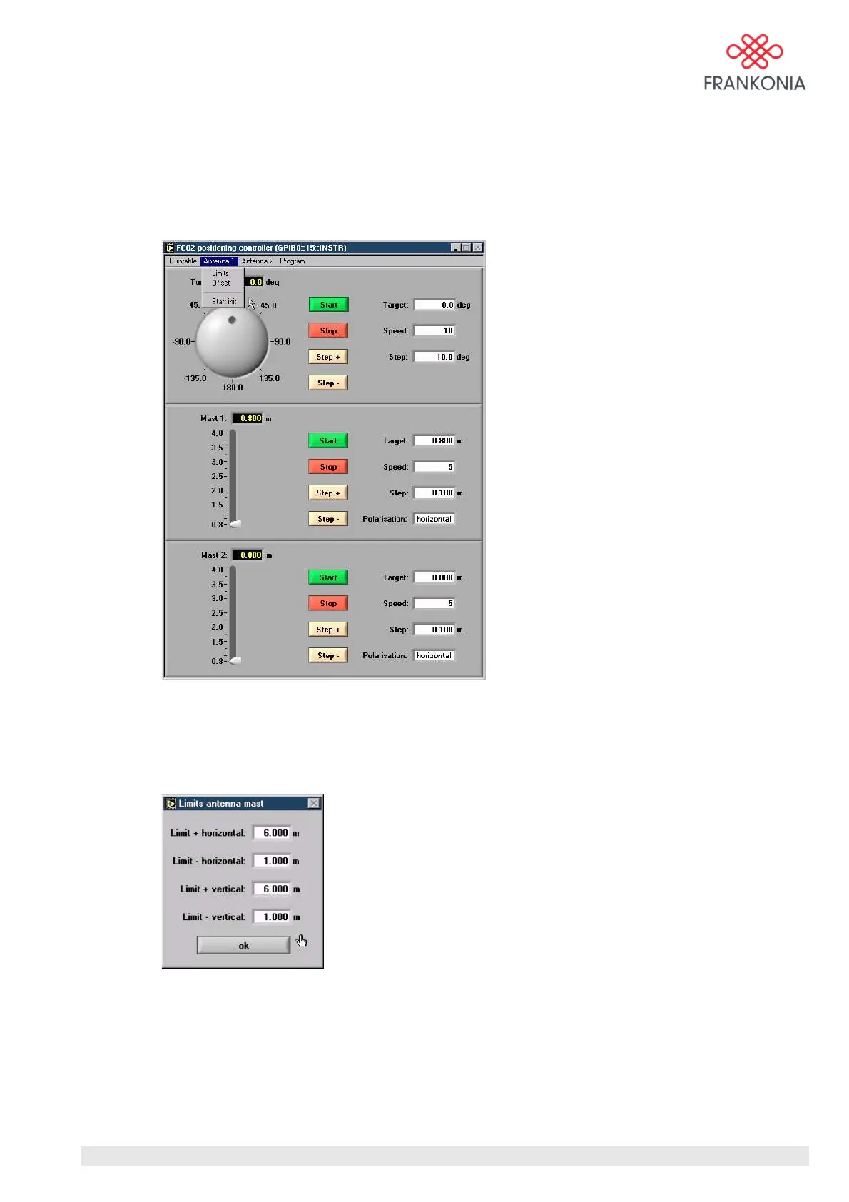 The software limits of the antenna mast can be changed if needed. As a factory setting these values are set