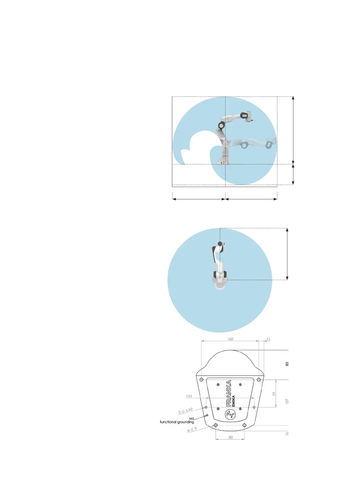 Franka Emika Panda - Operating Space and Footprint