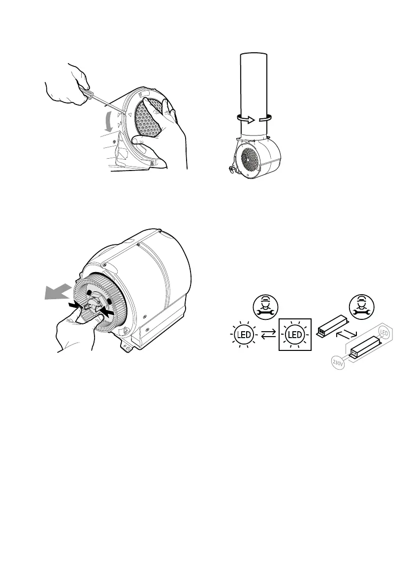 Puhdista tuuletinpyörä ja sivuristikko lämpi-
