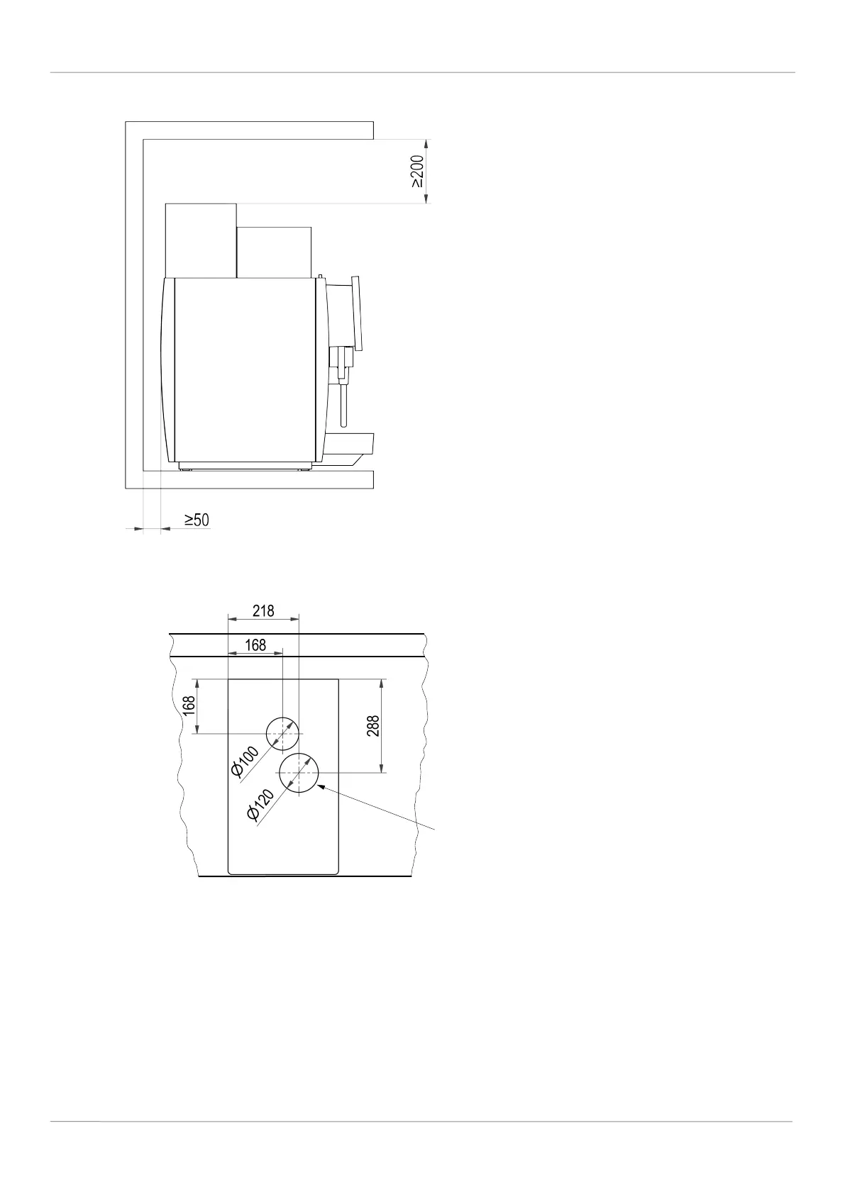 – Above: 200 mm (for filling and removal of the bean hopper)