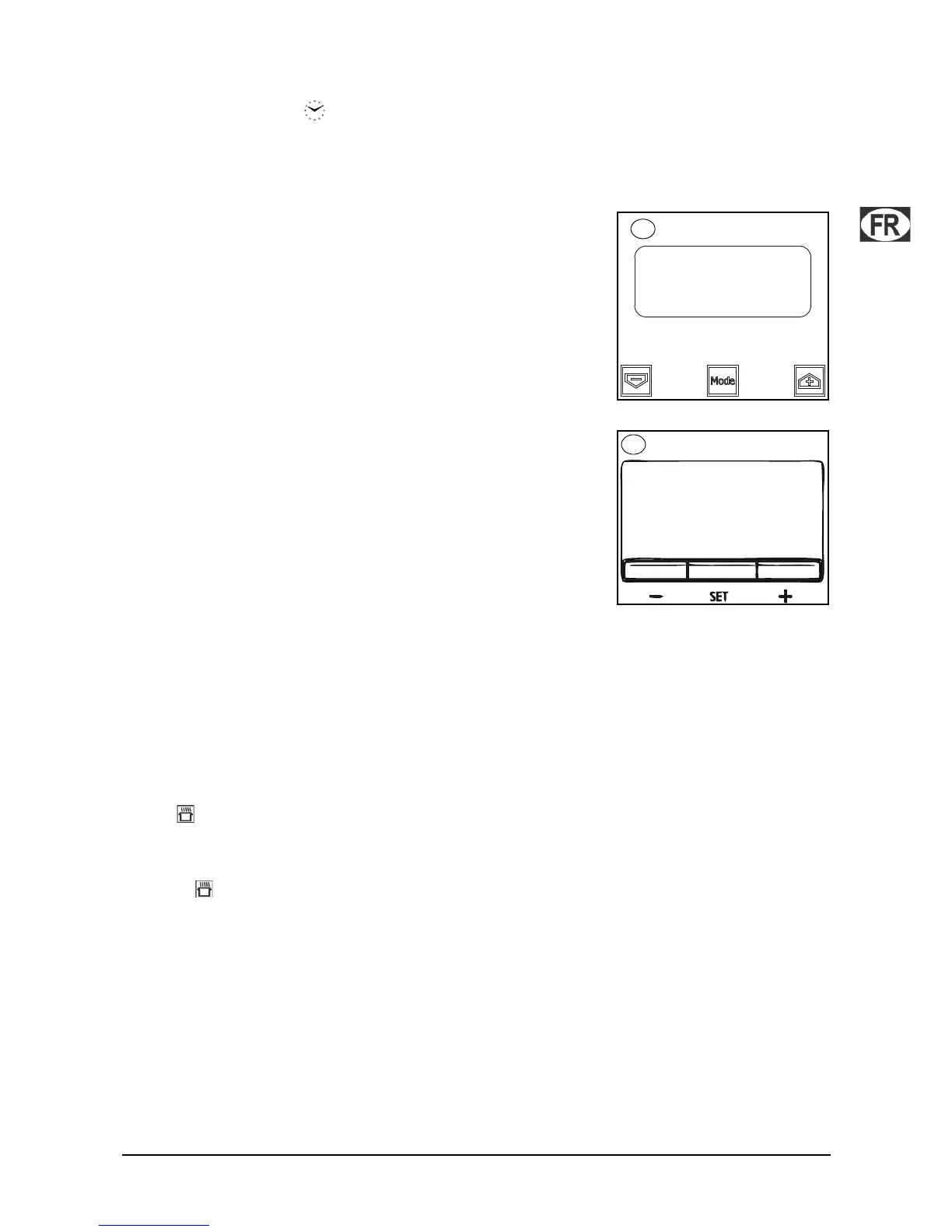 Quand l’heure du jour apparaît sur l’afficheur, appuyez deux fois sur la touche Mode ou Set pour programmer la durée et