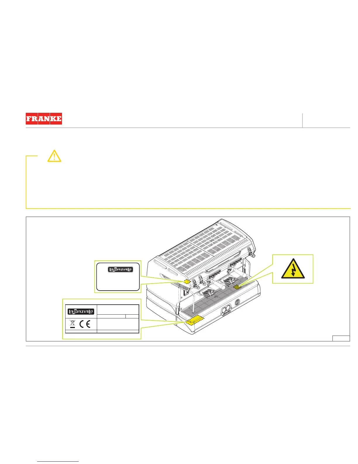In the picture below are shown the warning/technical data labels and plates placed on the machine.