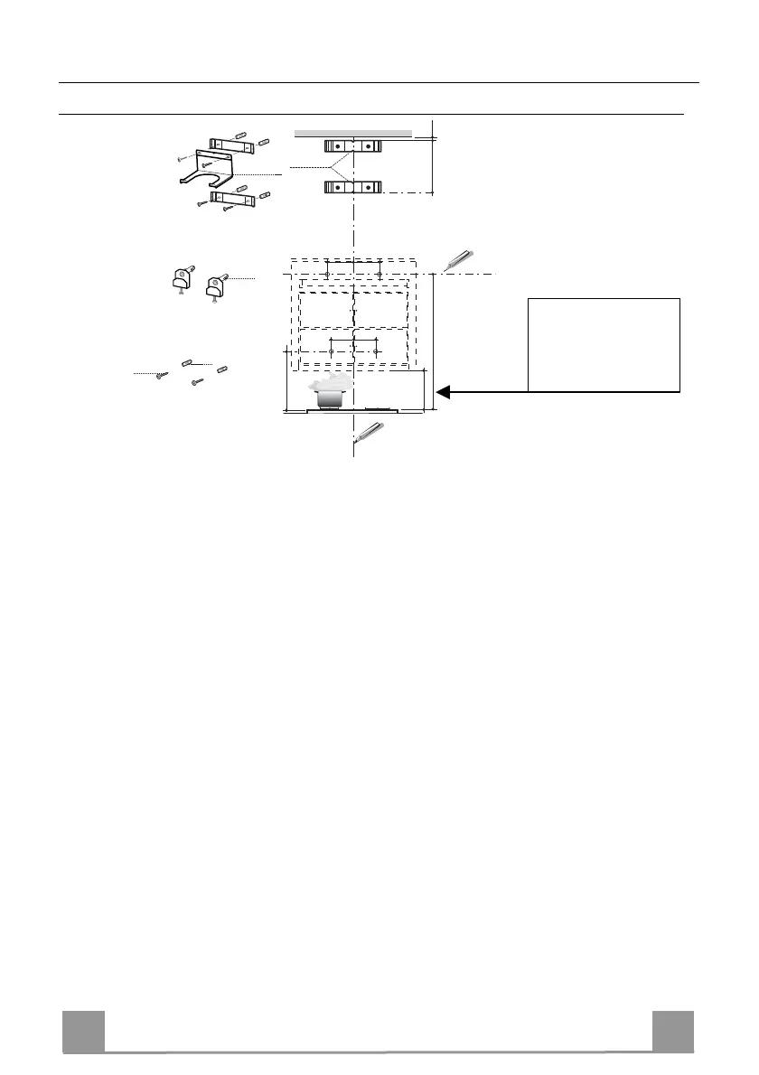 • Tavana veya üst sınıra kadar, Davlumbazın monte edilmesi öngörülen bölgenin merkezinde