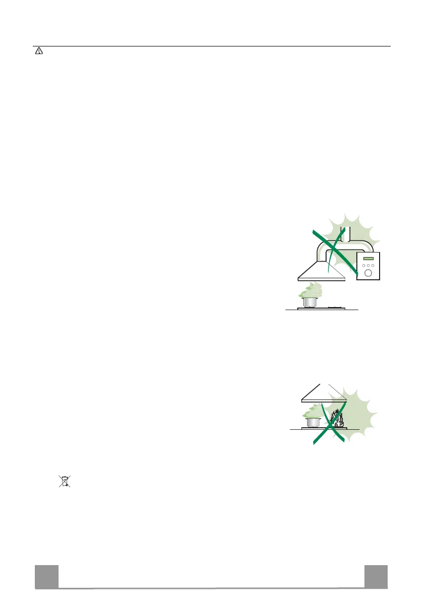 • Emhætten må ikke tilsluttes en kanal, der fører forbrændingsgasser ud i det fri (olie-