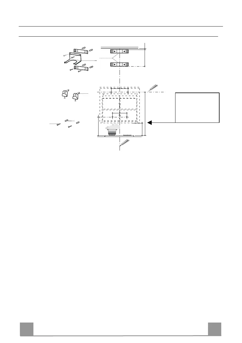 • a Vertical line up to the ceiling or upper limit, at the centre of the area in which the Hood is