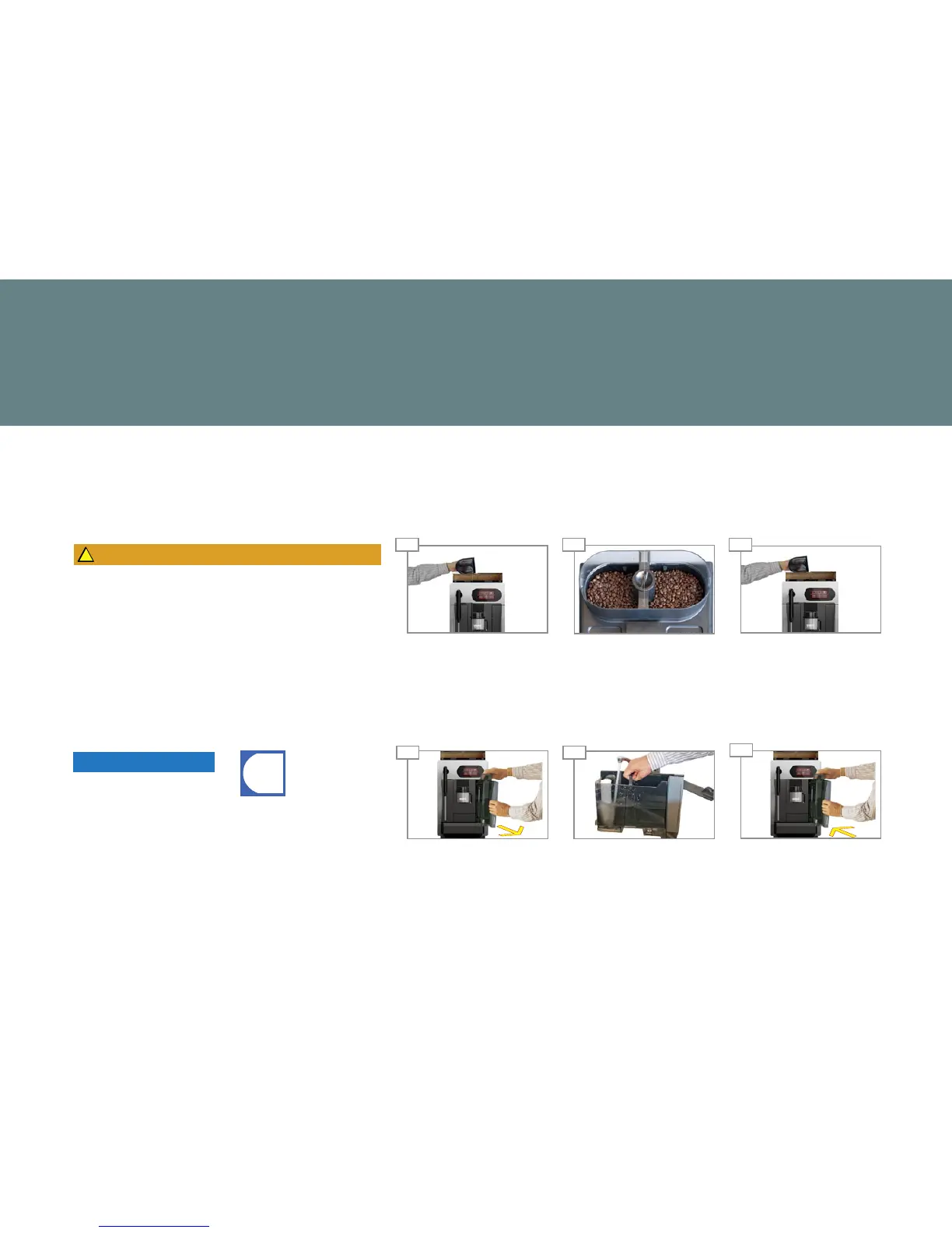 Add coff ee beans.Open the bean hopper.