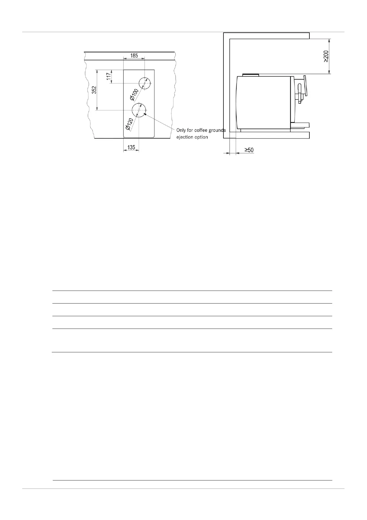 – Above: 200 mm (for filling and removal of the bean hopper)