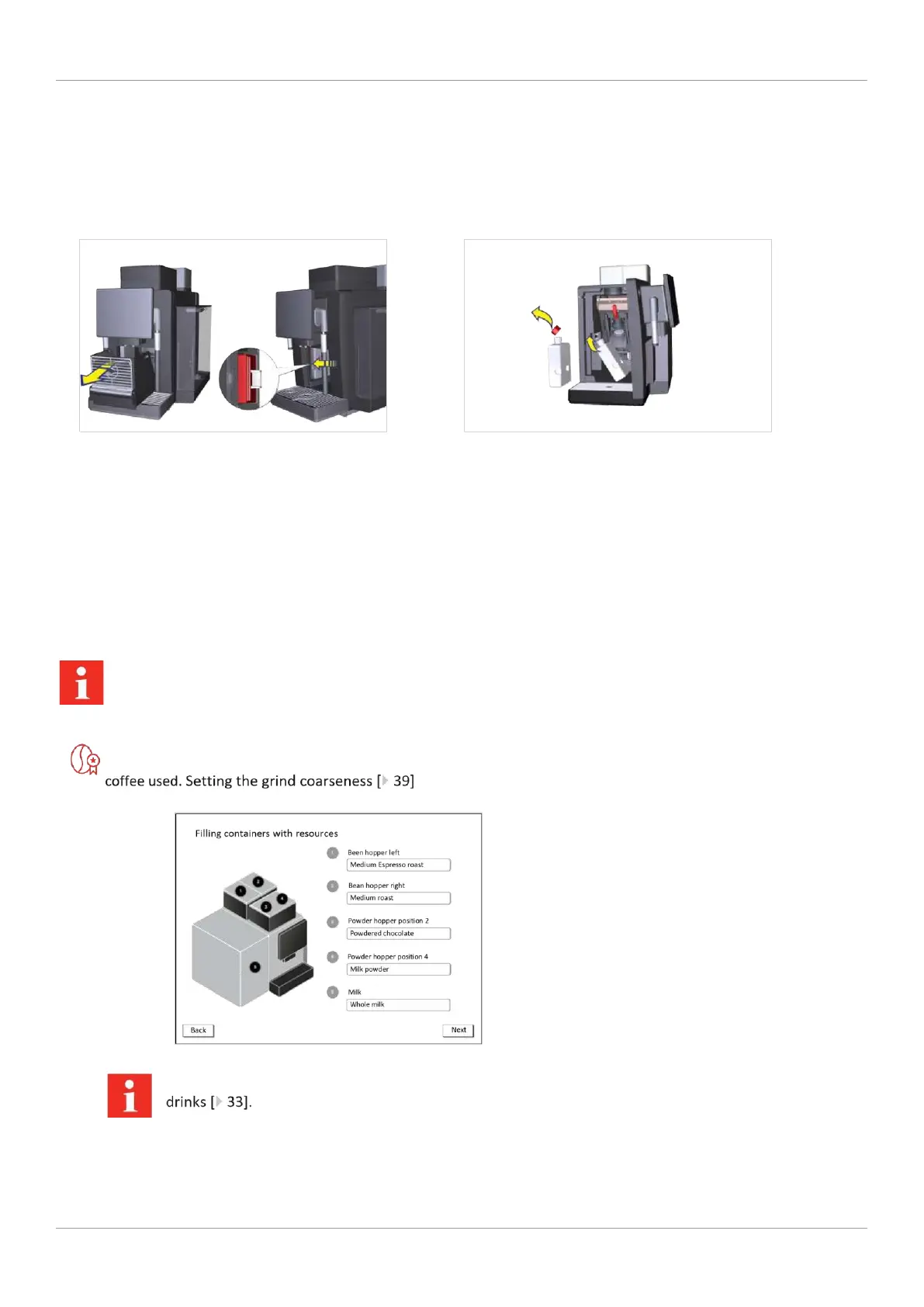 To adjust the standard drinks, press on the Franke logo in the top left. See also the section entitled Setting