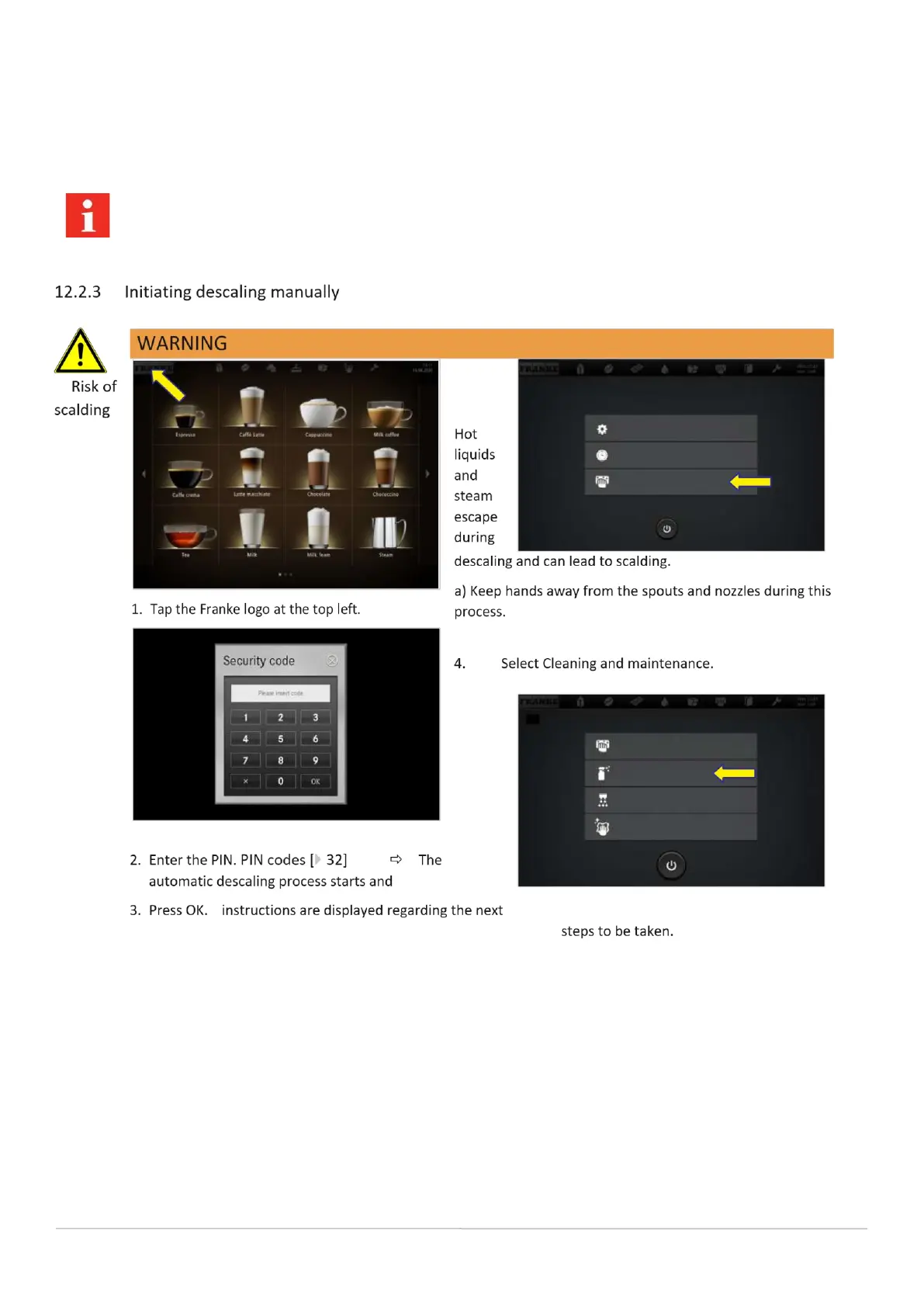 sufficient descaler concentrate before the cleaning process begins. If there is insufficient descaler concentrate, a