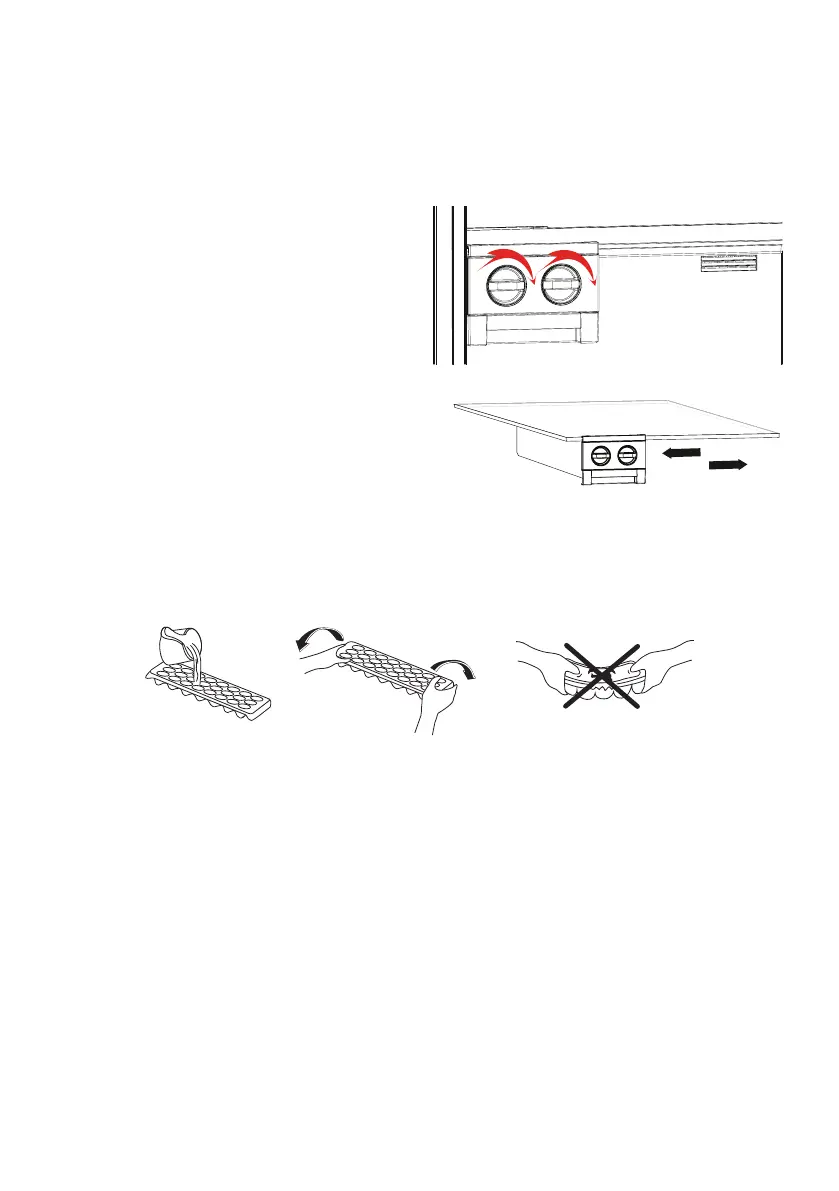 • After the water has completely turned into ice, you can twist the tray as shownbelow to