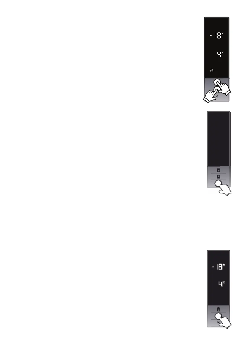 Drücken Sie gleichzeitig für 5 Sekunden auf den Gefrier- und Kühlknopf.