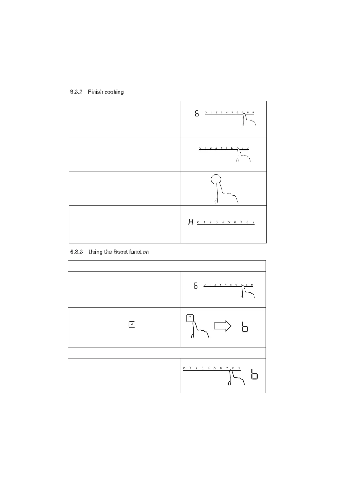 H will show which cooking zone is hot to touch. It