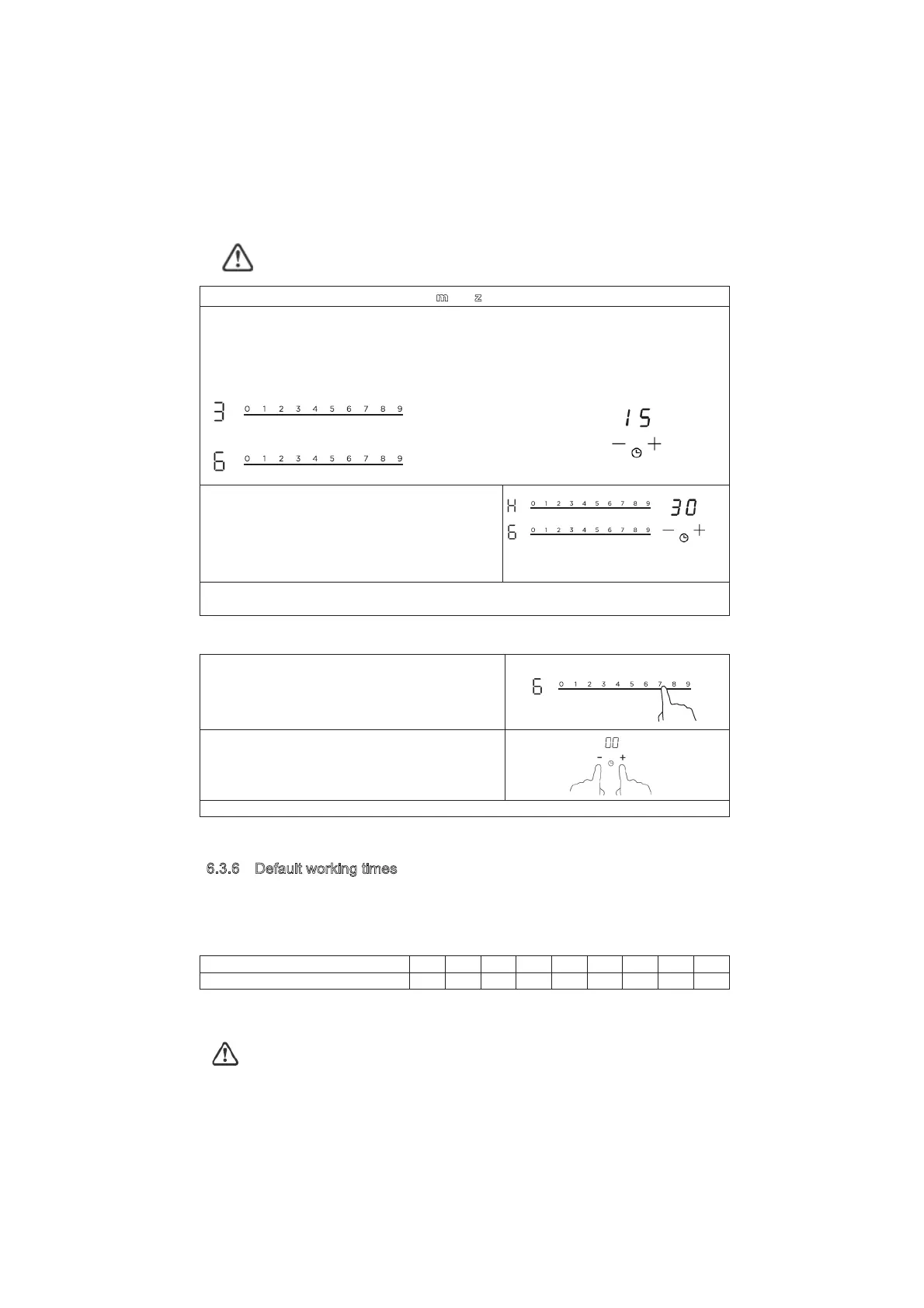 When you set the time for several cooking zones simultaneously, decimal dots of the relevant