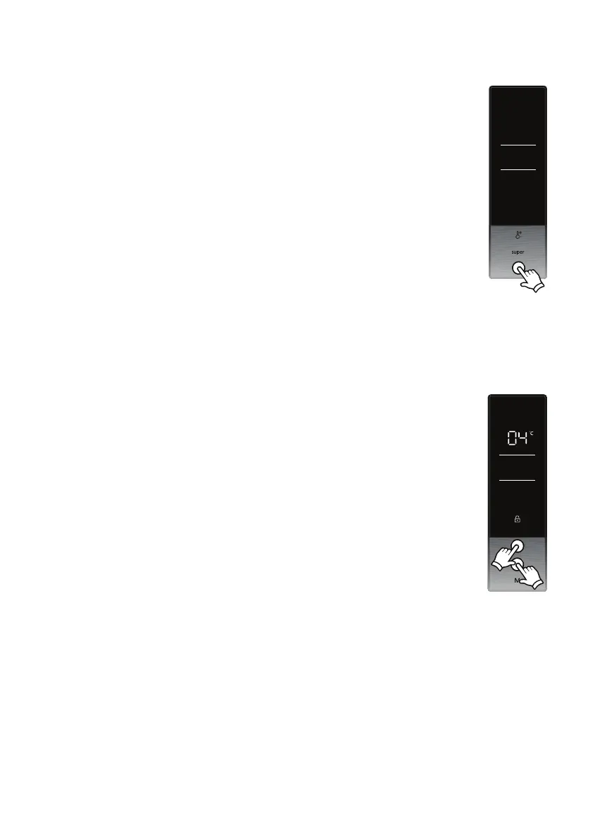 • Süper ve soğutucu sıcaklık ayar düğmelerine aynı anda 5 saniye boyunca