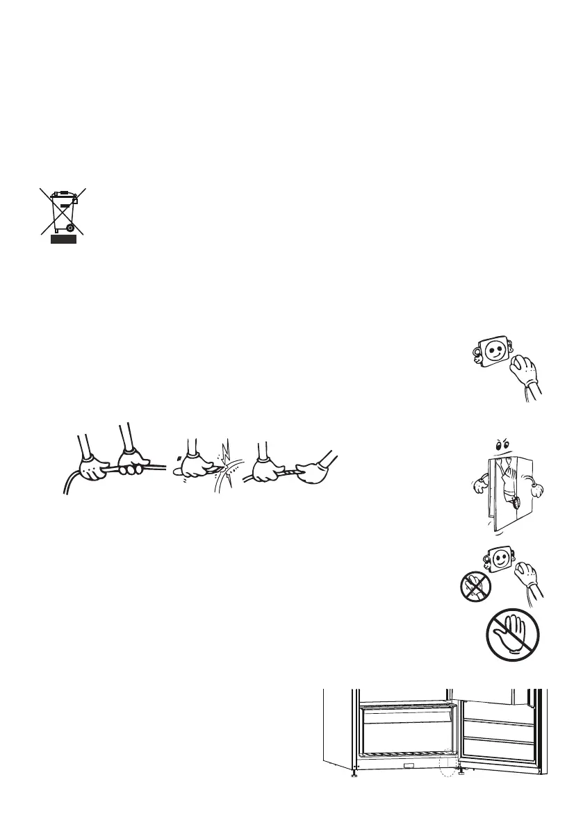 • Den Kühlschrank nicht mit nassen Händen an das Stromnetz anschließen.