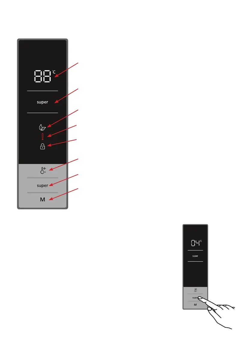 • Drücken Sie die Super-Taste, um das Schnellgefriersymbol zu