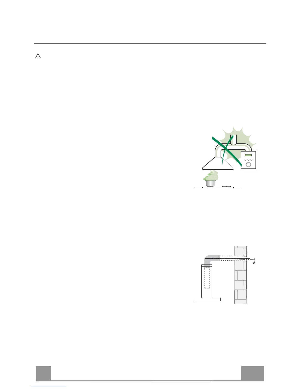 Anslut inte fläkten till rökgaskanaler för förbränningsrök från värmepannor,